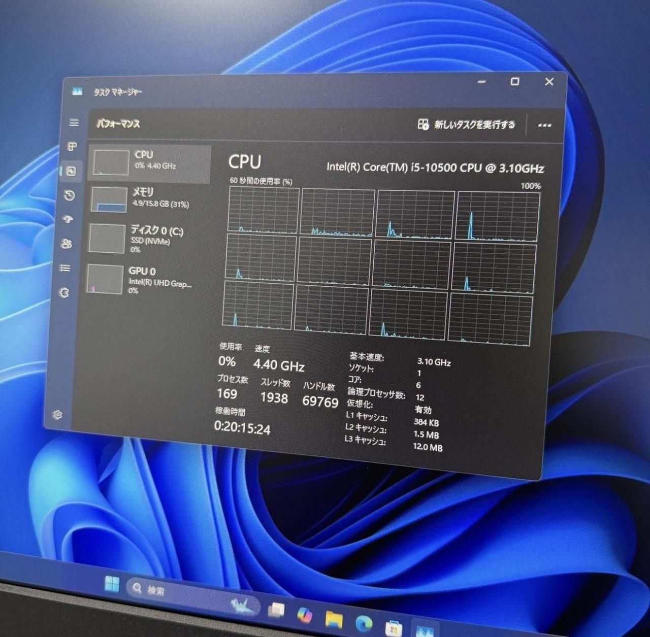 ・CPU : Intel 第10世代 Core i5-10500 最大4.50GHz (6コア 12スレッド) GPU: UHD graphics 630